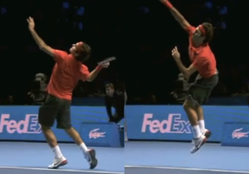 And for contrast here is a picture of Federer’s leg drive and jump on a serve: