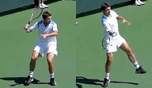 Wawrinka in preparation phase (left) and at contact (right) on a forehand
