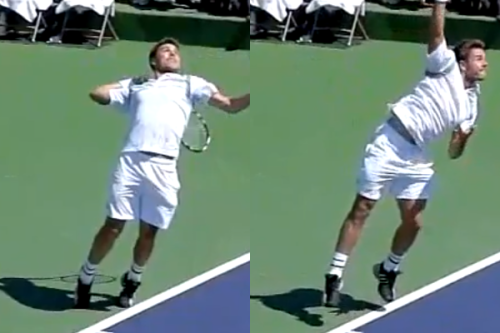 Here’s an image displaying Wawrinka’s leg drive and jump on a serve:
