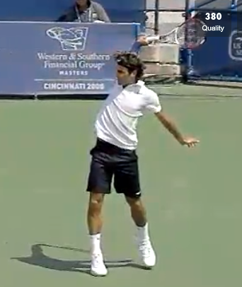 Federer with an extremely open finish on a one-handed backhand